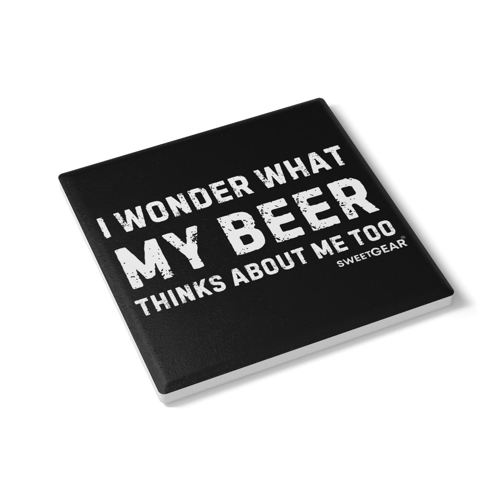 I Wonder What My Beer Thinks About Me Too - Funny Drinking Coaster