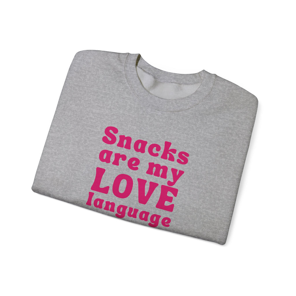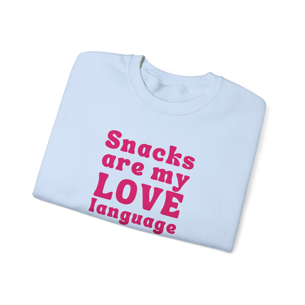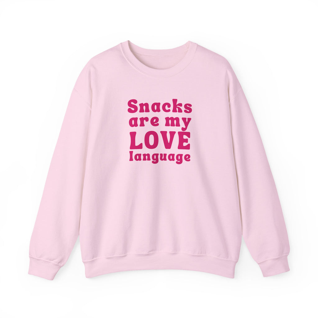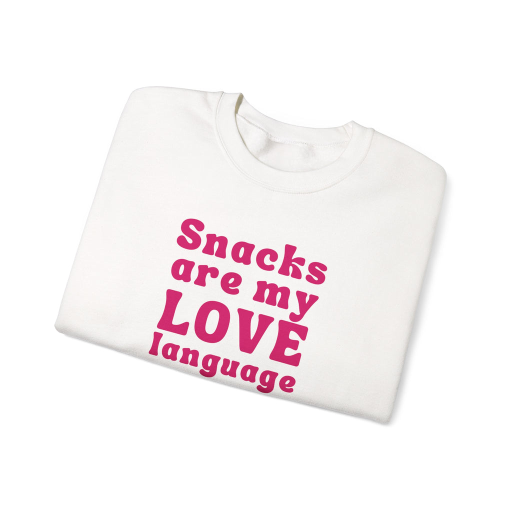 Declare your love for snacks with our "Snacks Are My Love Language" sweatshirt! Perfect for women who know that the way to the heart is through a bag of chips or a sweet treat. This fun and playful sweatshirt celebrates the simple joys of food, making it the ideal choice for snack lovers everywhere. Because sometimes, love speaks in snacks!