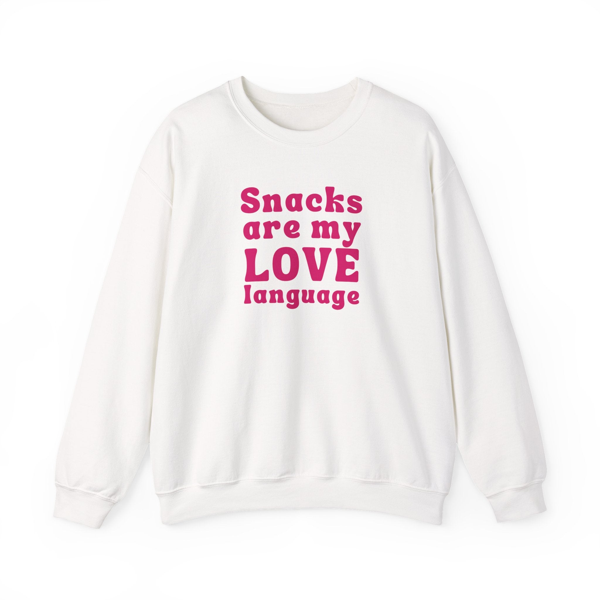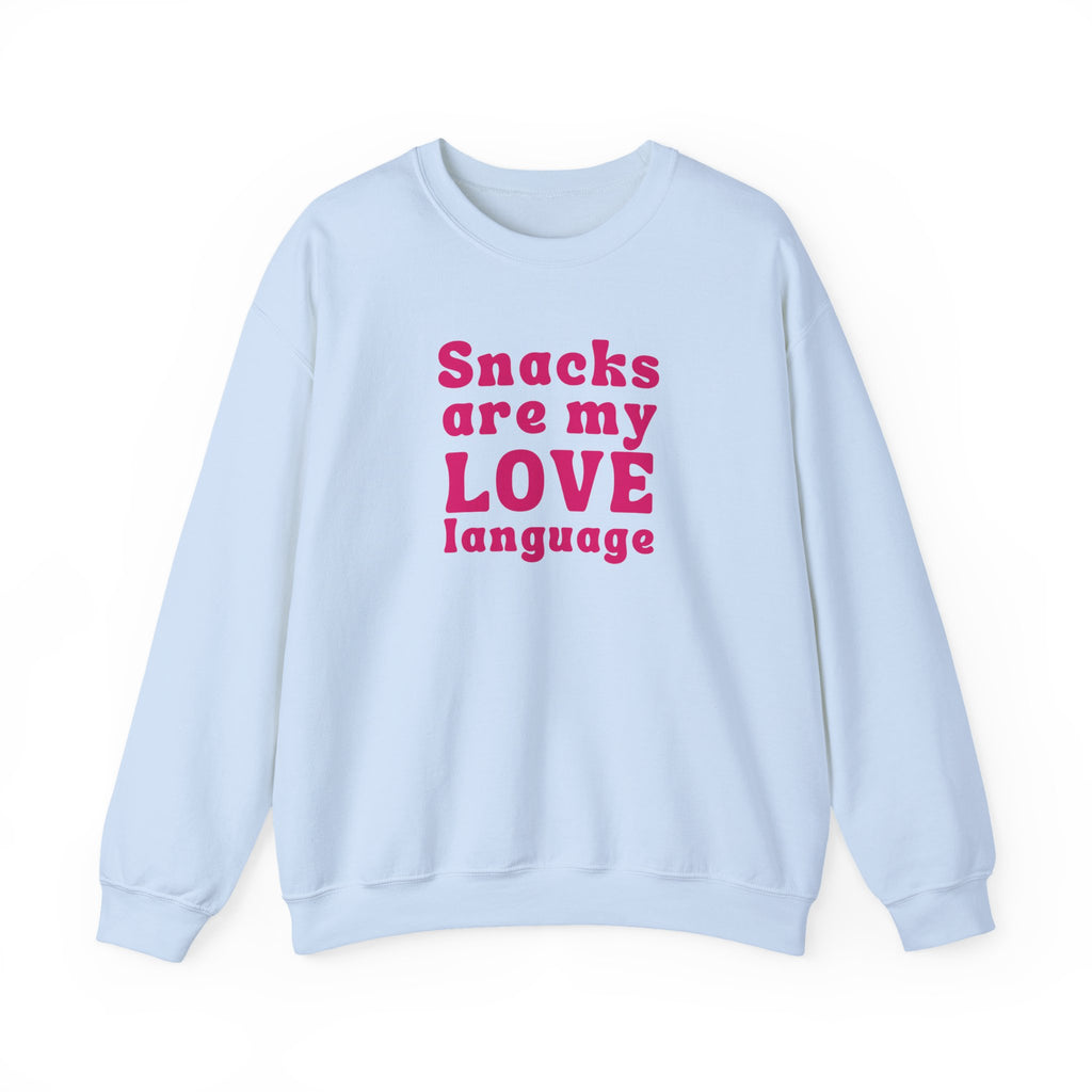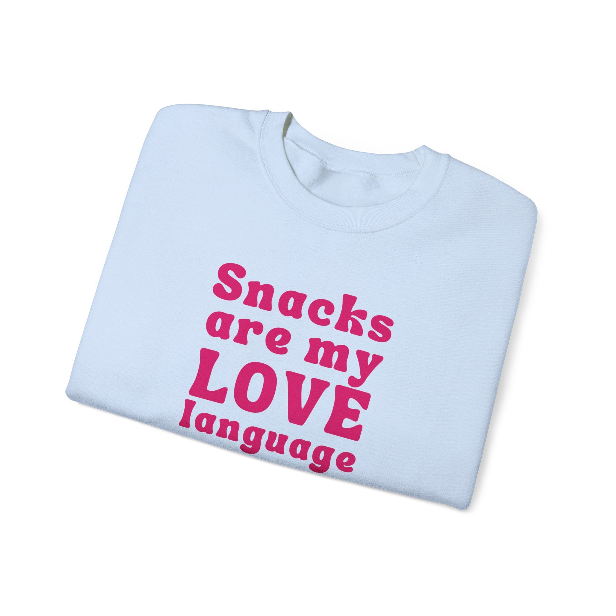 Declare your love for snacks with our "Snacks Are My Love Language" sweatshirt! Perfect for women who know that the way to the heart is through a bag of chips or a sweet treat. This fun and playful sweatshirt celebrates the simple joys of food, making it the ideal choice for snack lovers everywhere. Because sometimes, love speaks in snacks!