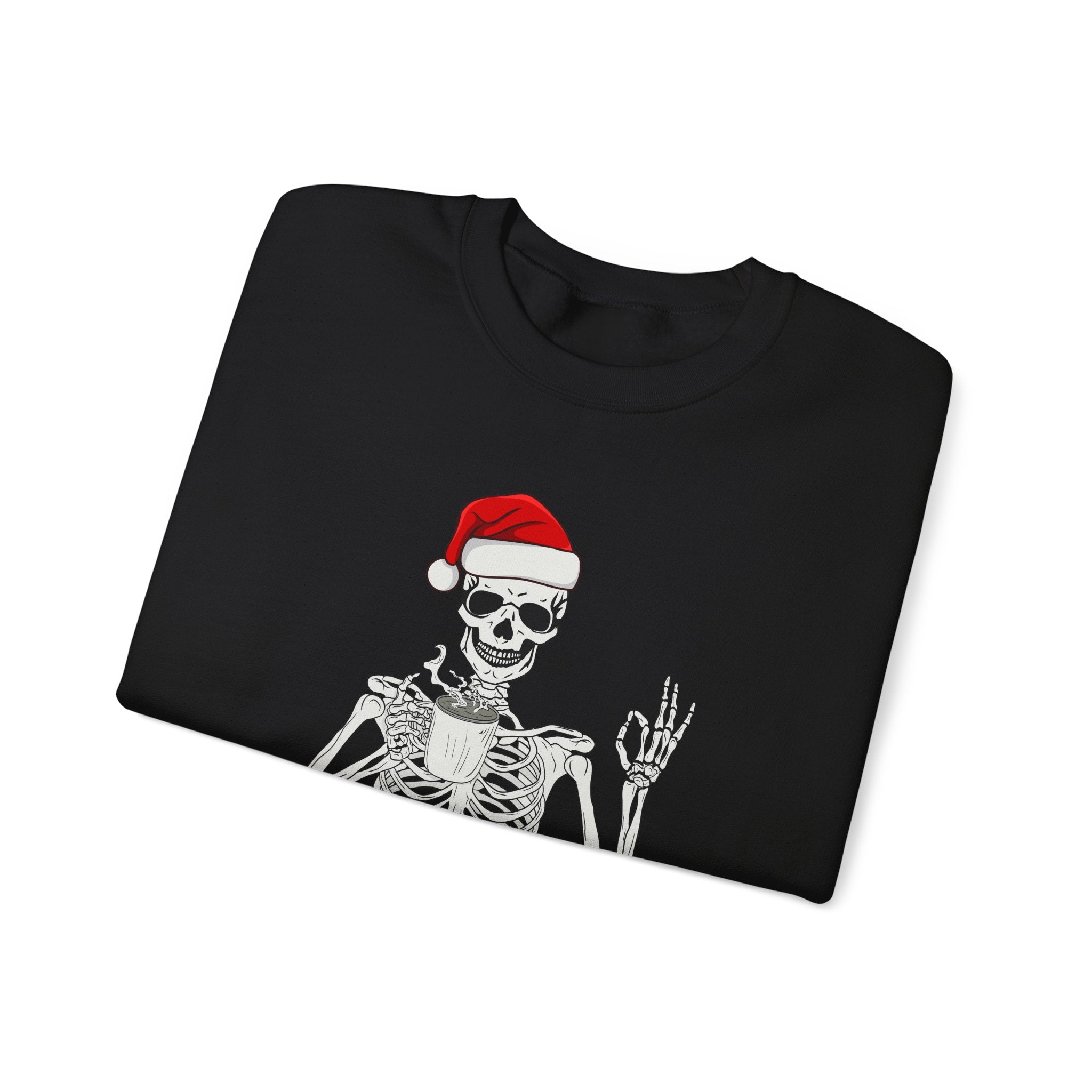 A cozy unisex sized crewneck sweatshirt featuring the phrase 'Never Better' with a skeleton, coffee, and Christmas hat that we can all relate to. Perfect for the winter season and the perfect vibe. This sweatshirt is great for lounging around the house or running errands in style.
