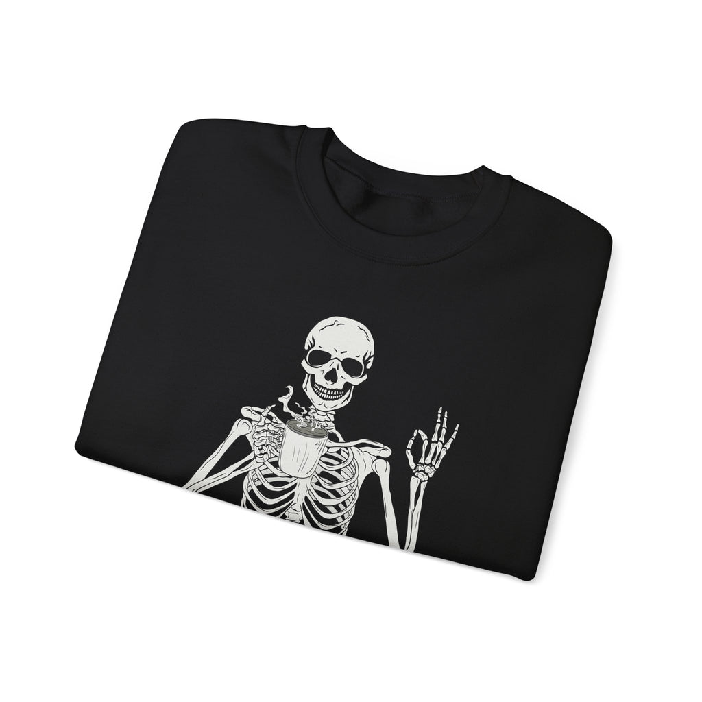 A cozy unisex sized crewneck sweatshirt featuring the phrase 'Never Better' with a skeleton and coffee that we can all relate to. Perfect for the fall season and the perfect vibe. This sweatshirt is great for lounging around the house or running errands in style.
