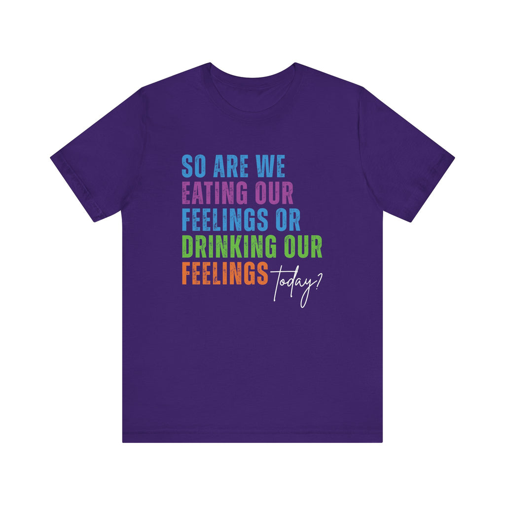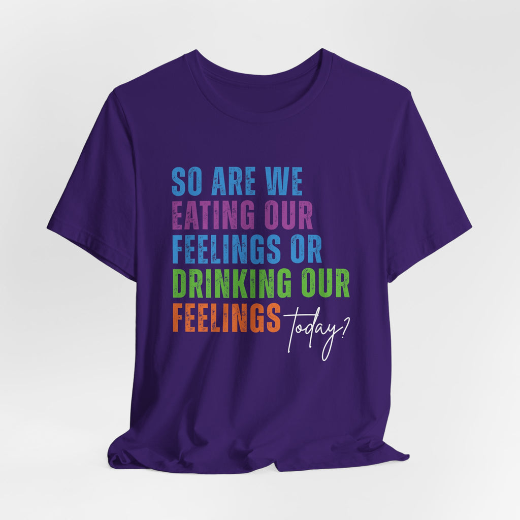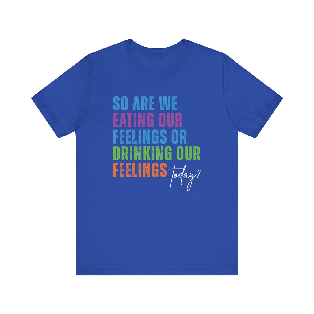 So Are We Eating or Drinking Our Feelings Today - Short Sleeve Unisex T-Shirt